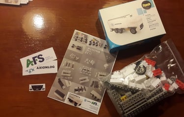 La caja, los componentes, las instrucciones y las stickers para completar el modelo.