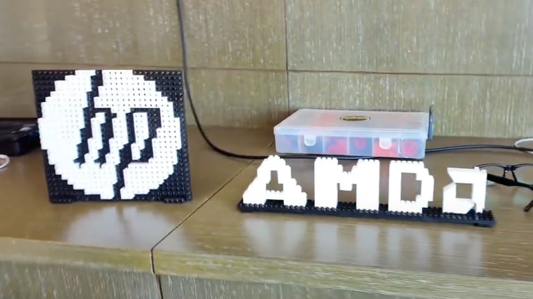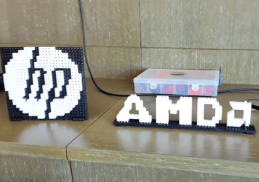 Sobre un bastidor, y utilizando miles de ladrillos RASTI, se puede mediante pixeles representar fotos.