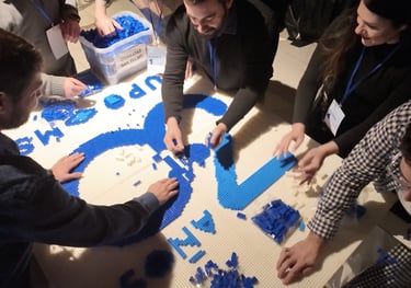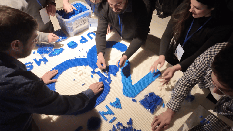 En medio de una jornada de capacitación, la colaboración de todos para construir el logo.